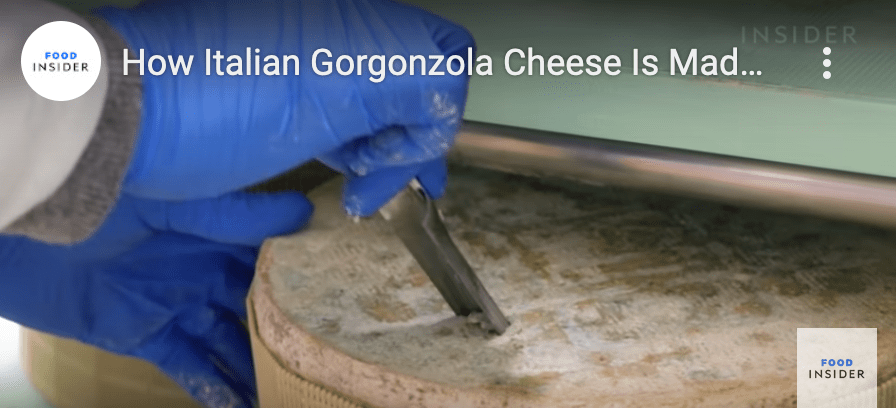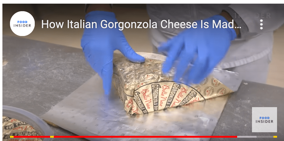 At 2:51 they talk about the 2 different kinds of gorgonzola, the softer “dolce” and firmer “picante”. They start out the same, but one is aged longer. They don’t say in the video which is older, but it’s the picante version.