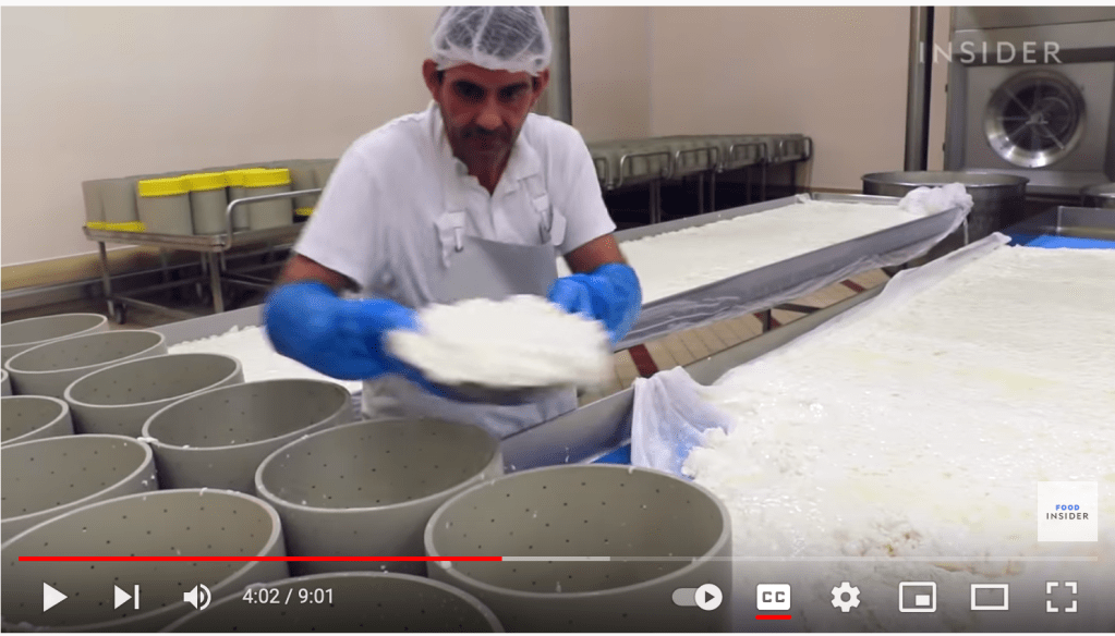 The section from 3:37-3:42 is kind of confusing, because they just jump from adding starter cultures & rennet to liquid milk, and then cutting the coagulated curd, and it’s not obvious that time has passed. But at a later point they say it’s abt 20 mins.